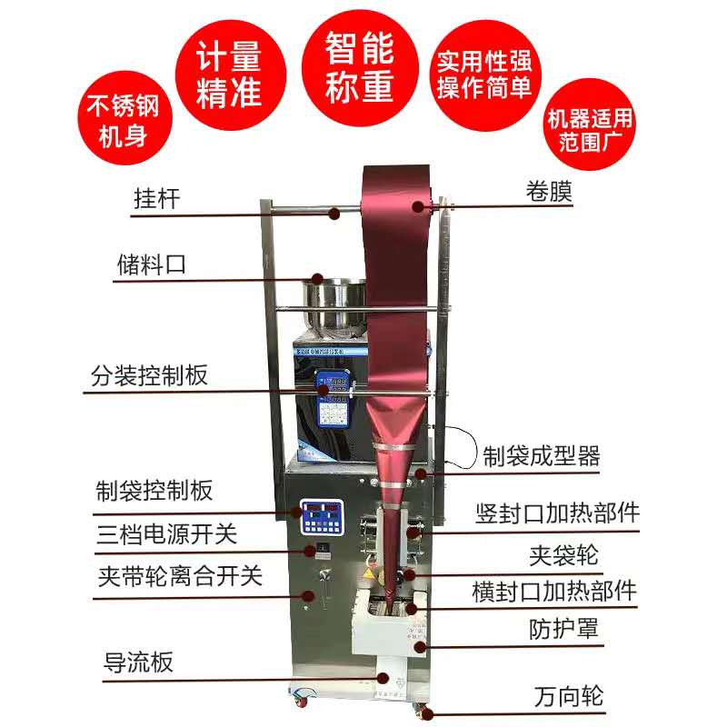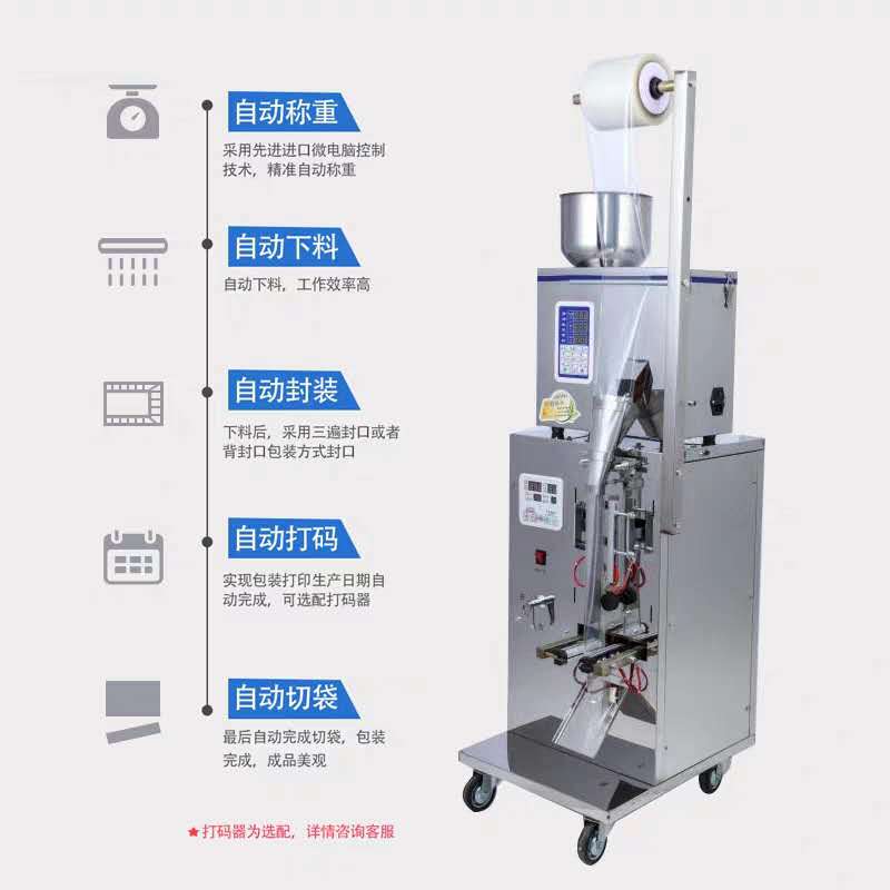 包裝機是結合了我司先進包裝技術,性能更穩定功能更強大,是集自動制袋裝袋封口于一體的新型電子機械產品,讓用戶真正感受科技創新的魅力。包裝機適用于食品、醫藥、化工產品中的松散、無粘性、顆粒狀物料的自動包裝,如:花生、瓜子、麥片、碎干食面、沖劑、干燥劑、味精、白糖、食鹽、洗衣粉等。